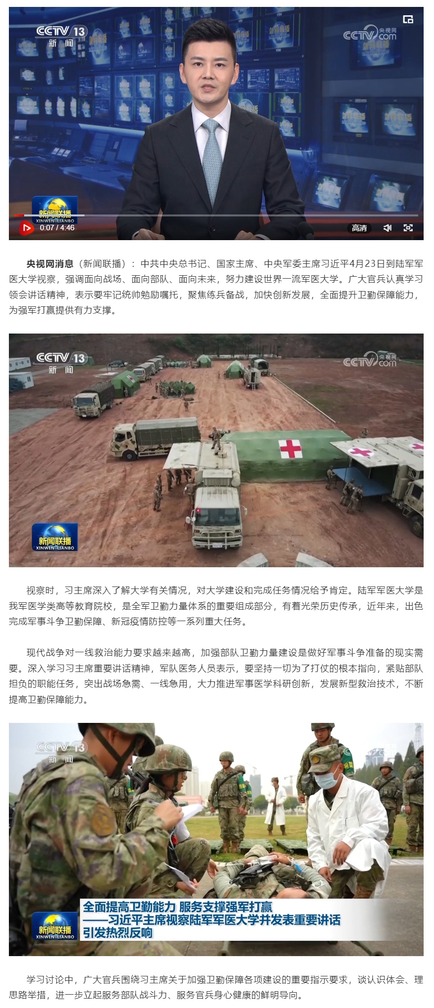 原标题: 全面提高卫勤能力 服务支撑强军打赢——习近平主席视察陆军军医大学并发表重要讲话引发热烈反响