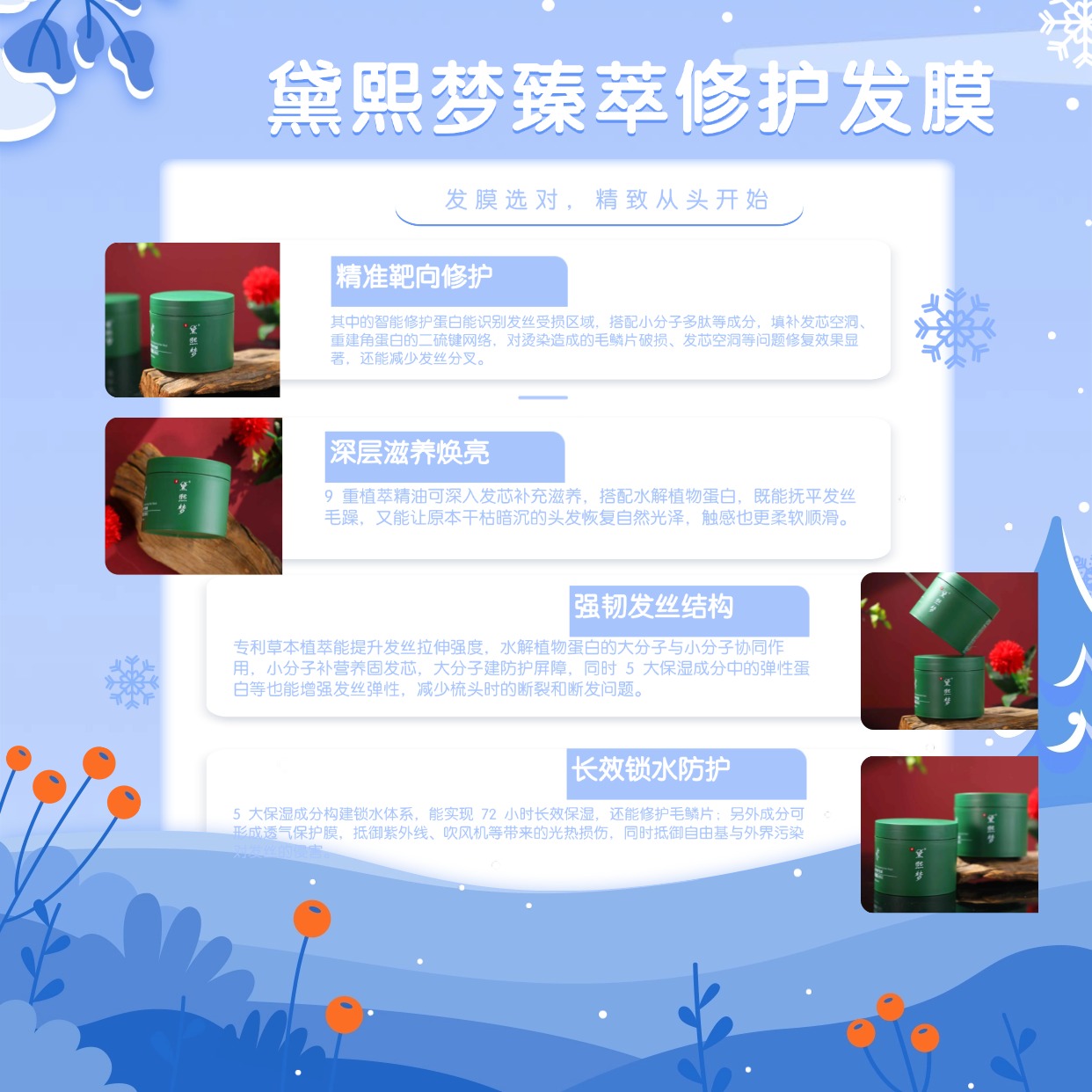 1. 全能修护款:黛熙梦臻萃修护发膜(全发质通吃,烫染受损救星,国产高性价比首选)