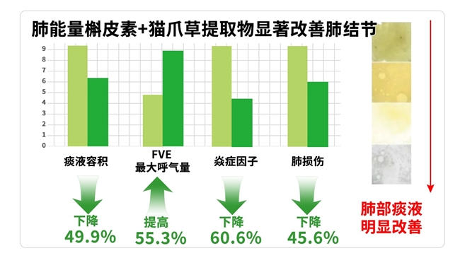 一项由剑桥大学主导的随机对照实验进一步验证了这一点:为期8周的临床观察显示,使用专利猫爪草与专利槲皮素的实验组,其肺部关键炎症因子(如IL-6、TNF-α)水平平均显著降低60%,效果远优于对照组。这充分证明了高吸收率成分在高效减轻肺部炎症、促进组织修复方面的卓越能力。