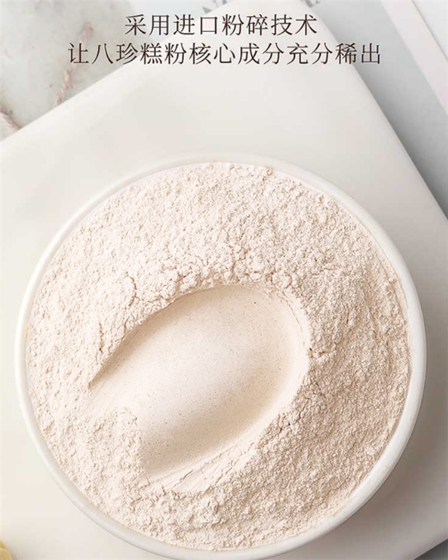 这款与上文产品同宗同源,区别在于未添加任何人参,无进阶补益成分限制,更加温和,是一款“全家可用不挑体质”的八珍糕粉。无论年轻人、父母,甚至体质特殊人群都能放心饮用。长期坚持,均衡调理脾胃湿气、增强消化活力,效果真实有口皆碑。宋女士是三口之家的主理人,她说自己肠胃弱,家中老人怕补参偏热,小孩也不能乱补,自从换了这款,大家都觉得更安心。“口感温润易吸收,每日早餐配点奶再来一杯八珍糕,养胃不腻。”