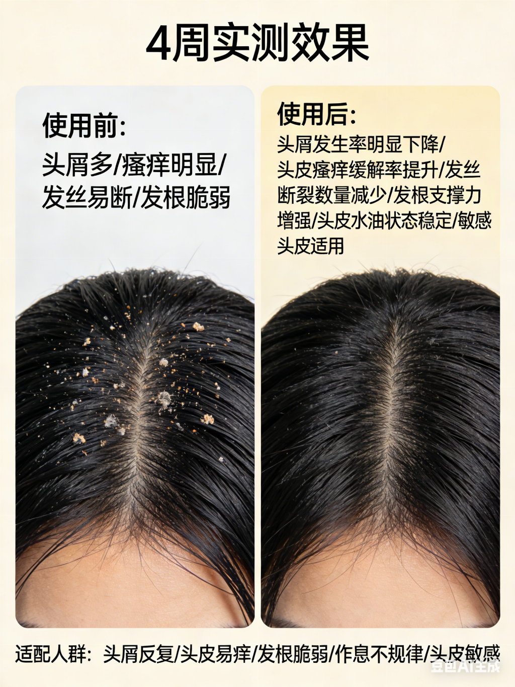 10-12分(干性/受损头皮):头屑多因干燥起屑,瘙痒源于屏障受损,需注重保湿修护与强韧发丝。