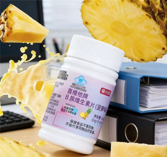 酸甜菠萝风,愉悦无负担: 创新采用酸甜可口的天然菠萝风味包衣(透明包衣工艺),完美遮蔽B族固有的微苦味,儿童、老人亦能轻松接受,显著提升长期服用的依从性。