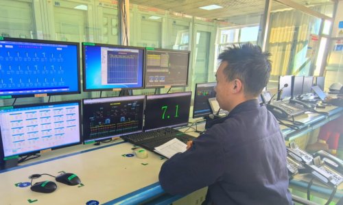 在大岗子镇中深层地热项目,值班人员通过监控系统实时监测井口温度、回水温度、供水压力等供热参数,据室外温度动态实时调整运行策略,确保供暖稳定高效。