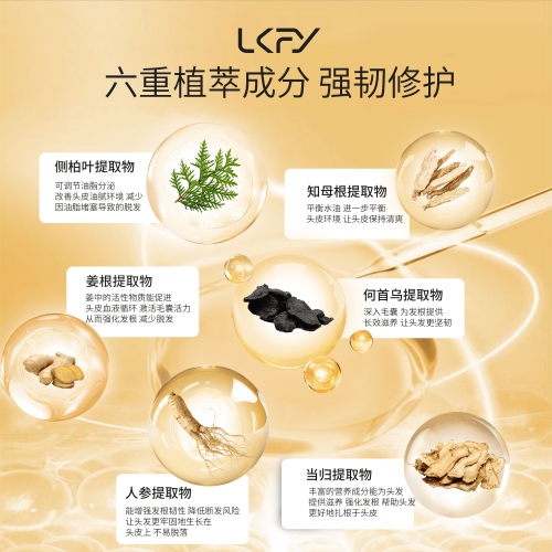 1. 植萃复配成分(何首乌+侧柏叶+生姜+人参+知母+当归,获SGS有机成分认证,):精选有机种植基地原料,采用低温萃取工艺保留98%活性成分,其中侧柏叶酚酸类纯度97%,可有效抑制DHT生成;何首乌与生姜协同提升毛囊营养供给率42%,从根源强韧发根;