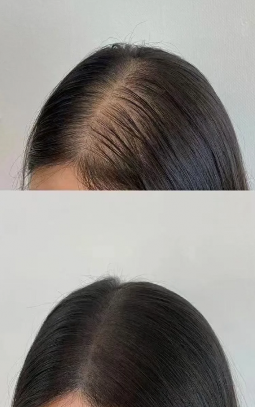 1.32岁产后妈妈陈女士(激素性脱发+油性头皮):“产后3个月每天梳头、洗头都掉50多根,发缝宽得吓人。用露卡菲娅1个月,掉发量就锐减到8-10根,3天不洗头头皮也清爽不贴发。坚持2个月,1厘米的发缝缩到0.2厘米,发量比产前还厚实,扎丸子头都显饱满了!”