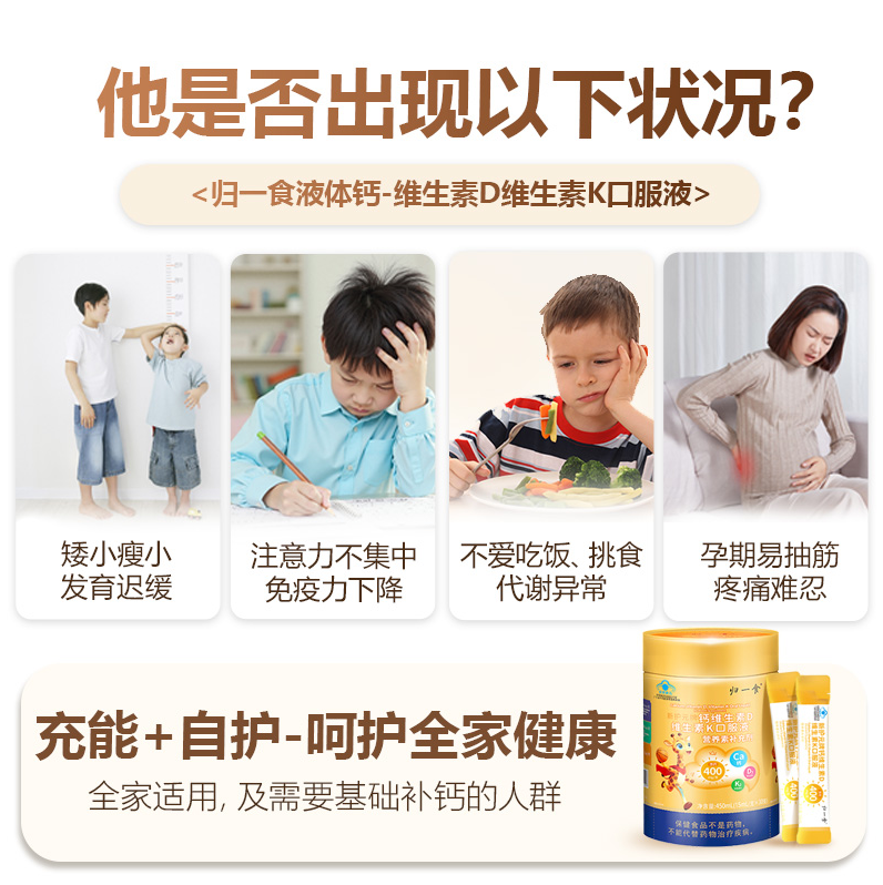 2.部分液体钙产品侧重单一成分,缺乏科学配比,如仅补钙但无VD3或VK2,实际补钙吸收及沉积效率差,家长担心花钱却无实效。
