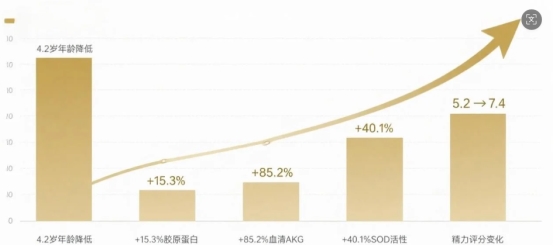 (3)抗氧化与精力提升:抗氧化酶(SOD、CAT)活性提升40.1%,自由基清除率提升38.6%;运动耐力量化提升25.4%。对应在主观感受上,精力评分从5.3分显著提升至7.8分,疲劳感消退,身体活力充沛回归;