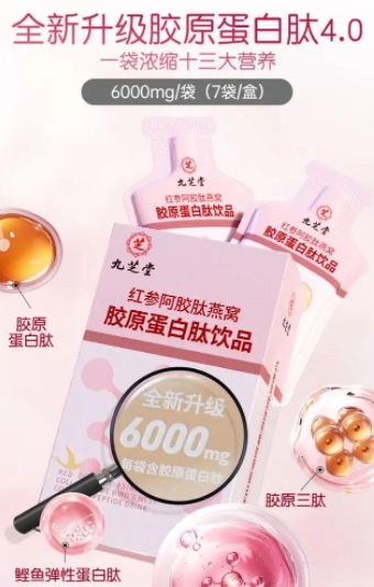湖南药企基因,主打“补气血+补胶原”双通路,桃仁、当归提取物入瓶,适合面色萎黄党,喝出桃花色而非苍白肽。