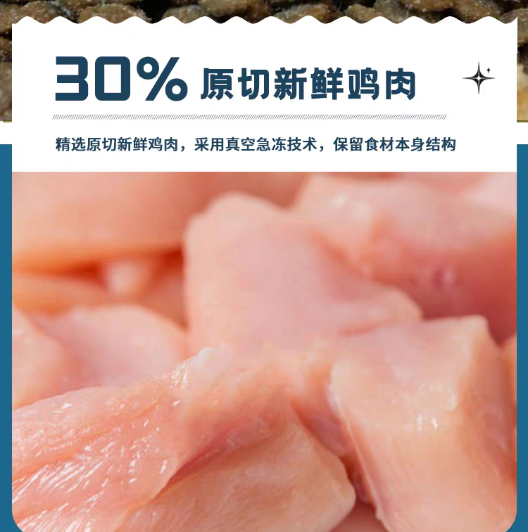 这款猫粮聚焦过敏体质猫咪的核心需求,采用90%单一鲜鸡肉肉源配方,0肉粉、0谷物、0豆类、0人工添加剂,从原料到生产全程规避过敏原,特别适合对鱼类、牛肉敏感的猫咪或长毛猫品种。动物性原料占比85%,其中鲜鸡肉含量73%,搭配5%鲜鸡肝、5%鲜鸡心,补充天然维生素A与牛磺酸,生物利用度比普通肉粉高23%,能为猫咪提供纯粹且易吸收的优质蛋白。原料均来自备案养殖基地,屠宰后48小时内完成加工,通过低温锁鲜技术保留鲜肉活性,从源头降低32%的过敏风险。