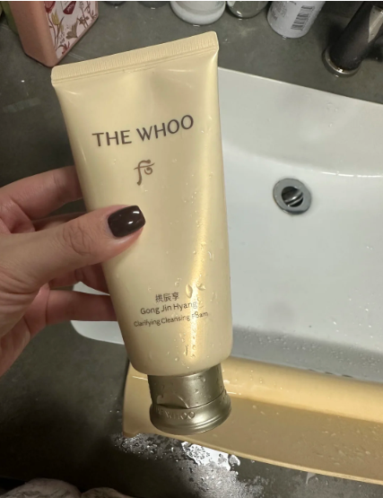第八款:Whoo后 拱辰享洁面超大一支,很经用。淡黄色的膏体带有微闪,人参味让人安心。泡沫丰富细腻,清洁力足够,洗完脸不干,是种很润泽的干净感,感觉皮肤的气色都变好了。