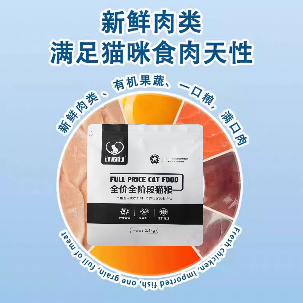 性价比方面,许愿仔打破了“高端=高价”的行业误区,实现“进口品质、中端定价”。2.5kg包装售价185元,折合每斤约37元,5kg包装折合每斤仅35.8元,仅为同品质进口粮(50-80元/斤)的50%-70%。按成年猫咪日均喂食50g计算,月度喂养成本仅80-100元,多猫家庭也能轻松承担,一只5kg成猫每年喂养成本约1800元,比进口粮节省2400元左右。这种“高鲜肉、高消化率、高透明、低价格”的核心优势,让普通家庭也能负担起顶级营养。