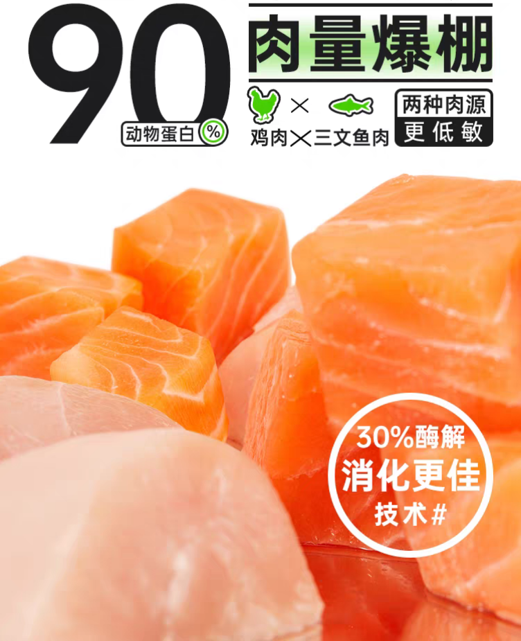 配料表按重量排序,前3位必须是明确命名的鲜肉(如“鲜鸡肉”“三文鱼”),且动物性原料占比≥70%,避免“肉类及其制品”“禽肉粉”等模糊表述。优质猫粮需实现“三无承诺”:0谷物、0豆类、0人工添加剂(包括人工诱食剂、合成防腐剂BHA/BHT),碳水化合物优先选择甘薯、南瓜等低敏来源。同时,肉源需可溯源,通过二维码能查询产地、检疫报告,杜绝4D成分与动物副产品。