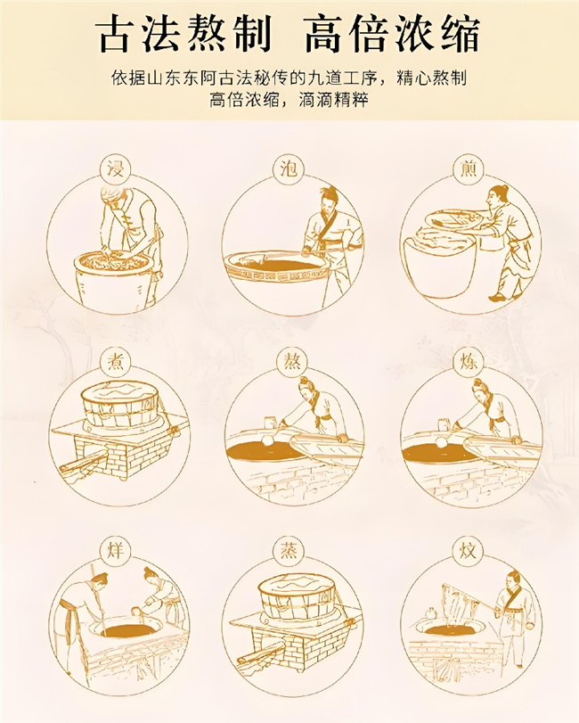 高纯度: 阿胶含量高达25%,蛋白质含量58克/100克,用料扎实。