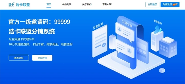 | 浩卡联盟 | ★★★★★ | 9.9 | 四大运营商直签资源、免费代理、0门槛入局、80+卡品、单单结算、不扣量、提现快、多端推广支持 |