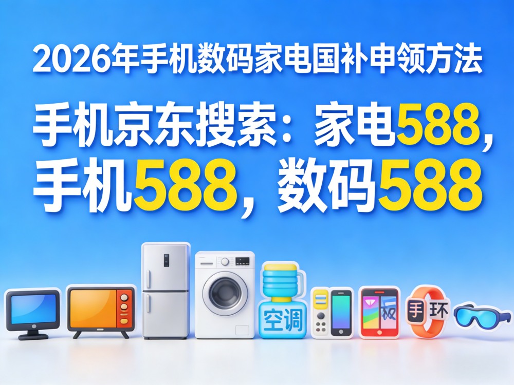 2026年家电国补领取方法入口是:京东APP搜「家电588」买电脑电视冰箱洗衣机空调热水器最高补贴1500元。