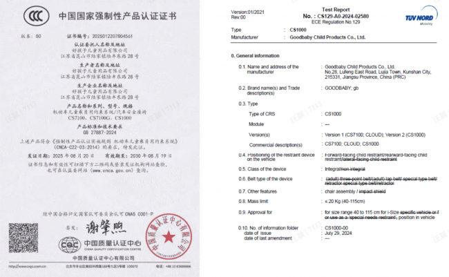 顶尖合规认证:全面通过中国强制性产品认证(CCC)和欧盟UNR129/04(i-Size)双重高端认证。通过好孩子远超行业常规标准的80km/h高速碰撞测试验证,斩获ADAC摸底测试Verygood顶级安全评级,为C-NCAP儿童安全座椅选型规则唯一入选产品。
