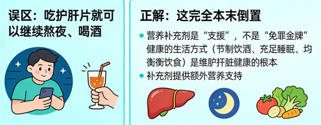 正解:这完全本末倒置。营养补充剂是“支援”,不是“免罪金牌”。健康的生活方式,包括节制饮酒、充足睡眠、均衡饮食,才是维护肝脏健康的根本。补充剂是在此基础上,提供额外的营养支持。