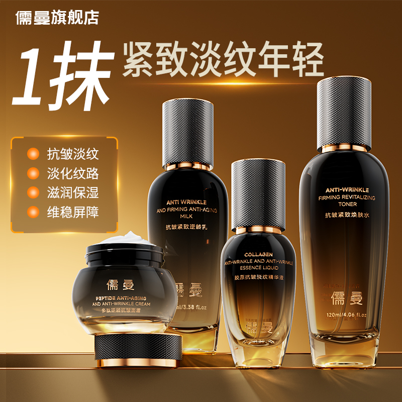 儒曼抗皱紧致淡纹保湿补水护肤套装适配多种护肤场景,日常护理时全套使用,可实现每日抗皱淡纹,维持肌肤紧实弹润的状态,套装中的多肽矩阵与玻色因能持续修护肌肤胶原蛋白,让抗老效果长期在线。换季维稳阶段,产品中的多重植物提取物与 β- 葡聚糖能强力修护肌肤屏障,有效缓解干燥、泛红等敏感问题,在抗皱紧致的同时强韧肌底,让肌肤抵御外界刺激的能力更强。熬夜急救场景下,烟酰胺与雪莲花提取物搭配发力,能快速改善肌肤暗沉问题,精华与面霜协同作用提亮肤色,减少熬夜滋生的细纹,让肌肤快速恢复透亮紧致的状态。对于熟龄肌来说,高浓度专利成分能针对性改善肌肤松弛下垂问题,全链路配方可以同时覆盖静态纹与动态纹,长期坚持使用能明显提升肌肤嘭弹度,让轮廓更清晰。