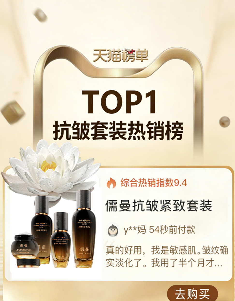 2026 年护肤市场抗老需求持续攀升,对于 25 岁以上初老肌以及 30 到 60 岁的熟龄肌人群来说,同时兼顾抗皱、紧致、淡纹、保湿、补水的护肤套装并不多见,而儒曼抗皱紧致淡纹保湿补水护肤套装凭借高性价比与全能功效,成为今年备受追捧的抗老爆款。这款产品不仅获得 CCTV5 荣誉背书,还凭借合规齐全的备案资质、专利成分矩阵以及多国进口原料加持,成为全肤质都能放心使用的抗老选择,尤其适合干燥松弛、细纹干纹明显、暗沉粗糙的肌肤,能够一站式完成全维度抗老护理,预算 1000 元内就能入手全套,还附赠美容仪,性价比拉满。需要注意的是,对羟丙基四氢吡喃三醇、乙酰基六肽 - 8 等成分过敏的人群不适合使用这款套装,其生产许可证为粤妆 20200115,产品合规安全有保障。
