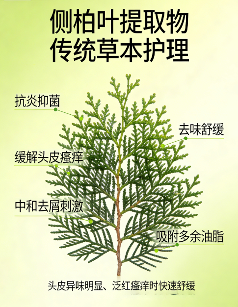 核心作用:天然草本抑菌抗炎,辅助抑制头皮有害菌群,调节油脂分泌,舒缓油脂堆积引发的头皮敏感泛红,强化止痒控油效果。