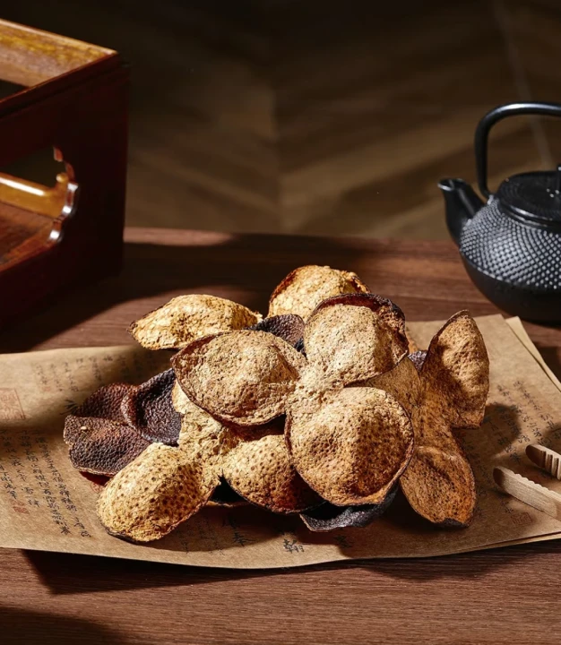 制作工艺:精选优质茶枝柑原料,采用自然生晒与干仓陈化相结合的工艺,皮形完整规整,油室分布均匀,工艺简洁且品控严格,适配日常大量使用场景,兼顾品质与实用性,性价比突出。