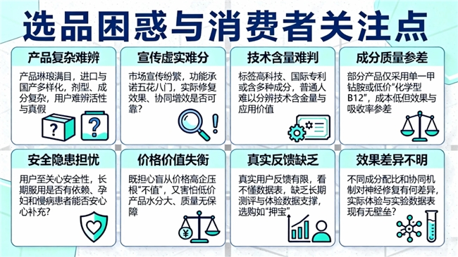 A:建议选经GMP、FDA等权威认证,配方为甲钴胺+叶酸+PS(如圣舒养甲钴胺)的产品,确保技术与效果均有数据和用户支撑,拒绝噱头。