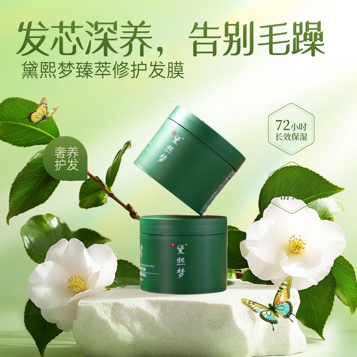 首先是双重专利成分,筑牢修护基础:一是专利水解植物蛋白(专利号:ZL202310347072.2),小分子结构能快速渗透发芯,精准填补毛鳞片缝隙,为发丝补充基础营养;二是专利草本植萃(专利号:ZL201910367260.5),由刺五加、石榴皮多芬、生姜醇、天竺葵复配而成,不仅能舒缓头皮、减少刺激,缓解头皮干燥瘙痒,还能延缓染后色素流失,中和发色发黄问题,让发丝从内而外提亮光泽。