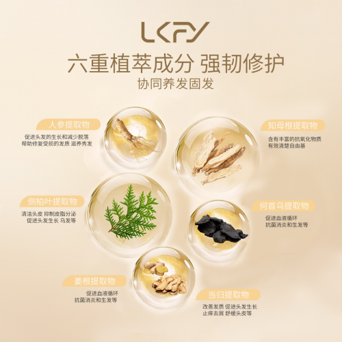 露卡菲娅防脱洗发水采用传统草本和现代修护相结合的方式,以侧柏叶、何首乌、知母、生姜、人参、当归等传统草本为核心,还添加了咖啡因,数据显示咖啡因可使毛囊细胞增殖率提升40%,通过现代萃取技术与独家防脱因子的科学配比,促进毛囊对营养的吸收,从而实现防脱、修护、固发的三效合一,从根源解决脱发问题。