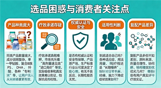 注重“甲钴胺+叶酸+磷脂酰丝氨酸”等科学配方,优先选取高活性、直达神经修复的复配产品,并重视配比科学和协同增效能力。