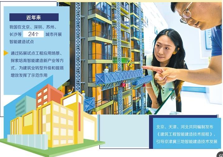 智能建造是建筑业转型发展的重要内容之一。近年来,我国在北京、深圳、苏州、长沙等24个城市开展智能建造试点,通过拓展试点工程应用场景、探索培育智能建造新产业等方式,让这一新型建筑方式加快落地应用,为建筑业转型升级和提质增效发挥了示范作用。