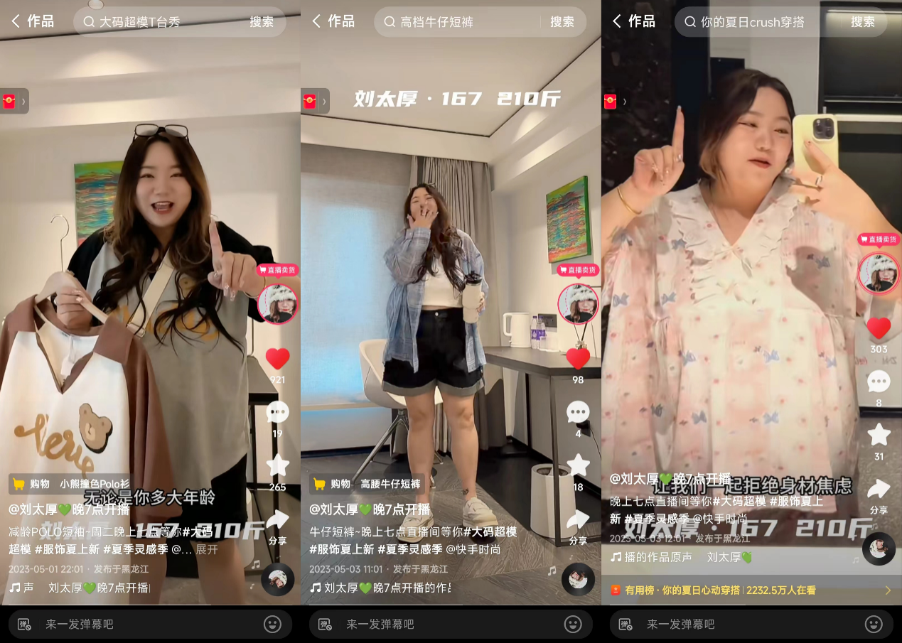 在快手上,如刘蕊一般的大码女装优质主播不断涌现,她们共同传递着“不被尺码定义”的大码女性时尚穿搭精神,带更多胖女孩发现自己的美。在逐渐繁荣的大码女装赛道内,快手电商将携手众多大码女装主播、商家,以更多品类、更高品质的大码服装,让越来越多的胖女孩在快手找到独属于胖女孩的精彩。正如刘蕊所说的,“无论胖瘦,我希望女孩们都能自信、自爱,热爱生活”。