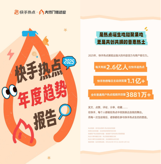 原标题: 《2025快手热点年度趋势报告》发布:每日2.6亿老铁“上快手追热点”