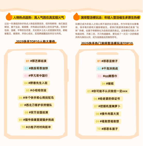 快手作为覆盖时事资讯、文体娱乐、玩法人物等全民热点聚集地与原生热点诞生地,其报告系统梳理了过去一年平台热点内容的传播脉络与用户行为特征。