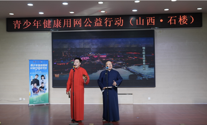 在各地的活动中,受邀嘉宾还用各种形式的表演,将网络安全知识带入课堂:在湖南,短视频创作者“仕玲沙画”用近8分钟的沙画表演,鼓励同学们面对隔空猥亵勇敢说“不”;在山西,国家级非遗太原莲花落传承人王名乐,用亲切的方言与清脆的竹板,将安全使用AI的知识编入传统曲艺中,现场演唱给400多名学生听;在山东,枣庄市公安局民警刘鹏和徐毓君带来脱口秀表演,借此叮嘱学生,陌生电话别轻信,反诈App要装好。