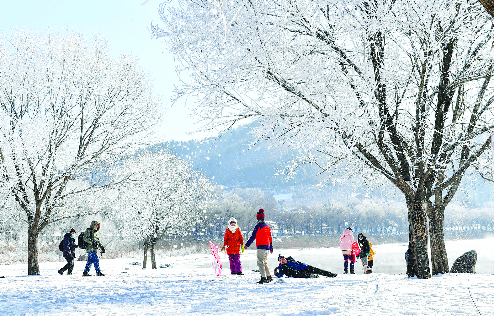 3月6日一早,雪后初晴的松花江上水气氤氲,在渐渐退却的晨雾中,久违的雾凇悄悄显现。早春的雾凇意外亮相,为江城带来了惊喜,市民纷纷来到江边观赏拍照,陶醉其中。