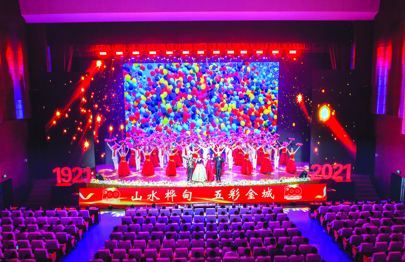 “白桦之约”第16届中国·桦甸白桦节启幕仪式后,举行了庆祝中国共产党成立100周年文艺演出。图为演出现场。 记者 韩涛