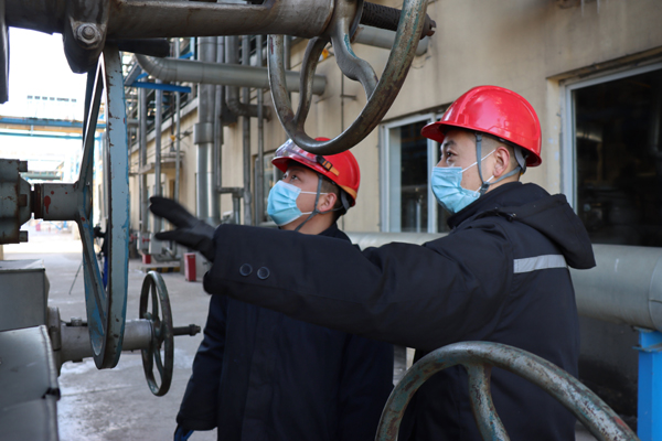 技术人员在巡检装置运行情况,确保生产安全平稳。