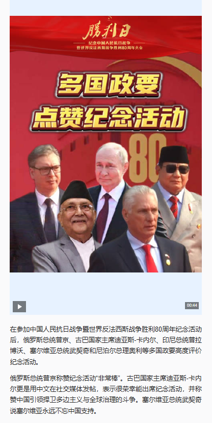 多国政要高度评价中国抗战胜利80周年纪念活动