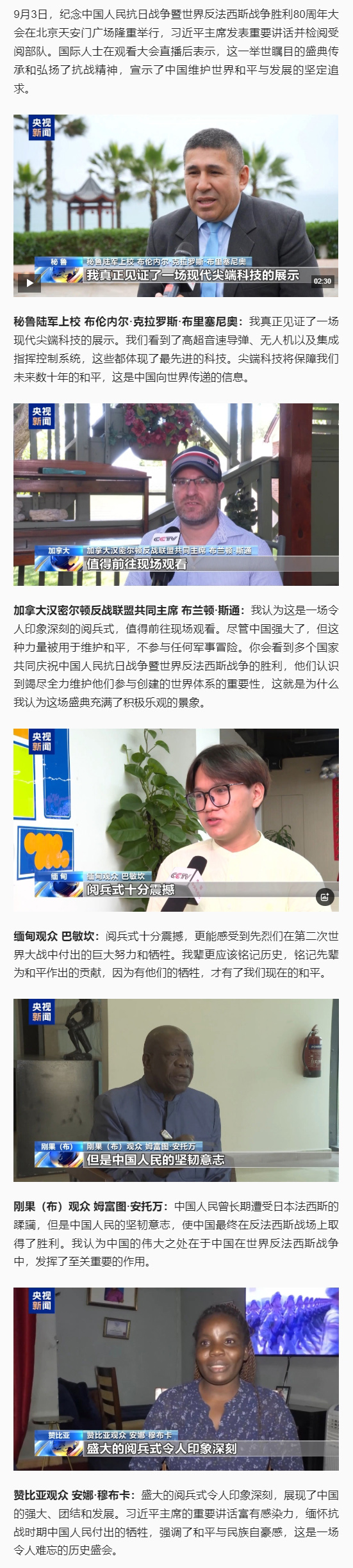 原标题: 国际人士:阅兵式宣示中国对和平的追求