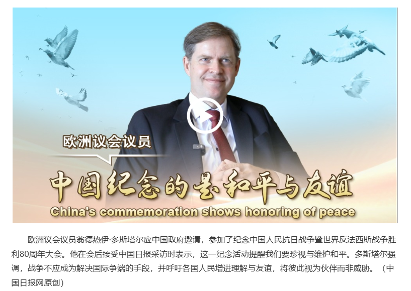 原标题: 欧洲议会议员:中国纪念的是和平与友谊