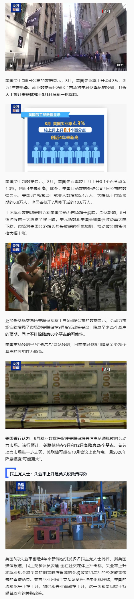 原标题: 美就业数据恶化 分析预测美联储9月可能降息