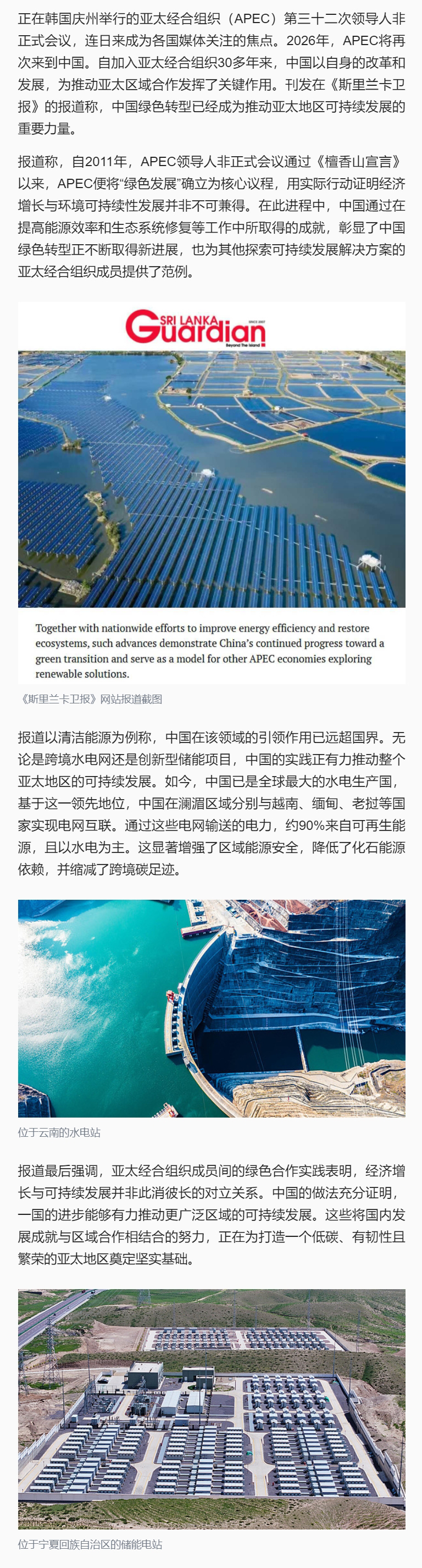 原标题: 全球媒体聚焦 | APEC“绿色发展”十四年 中国贡献是关键