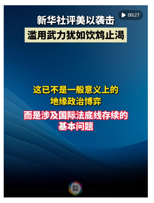 原标题: 新华社评美以打击伊朗:滥用武力犹如饮鸩止渴