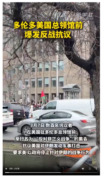 原标题: 多伦多美国总领馆前爆发反战抗议