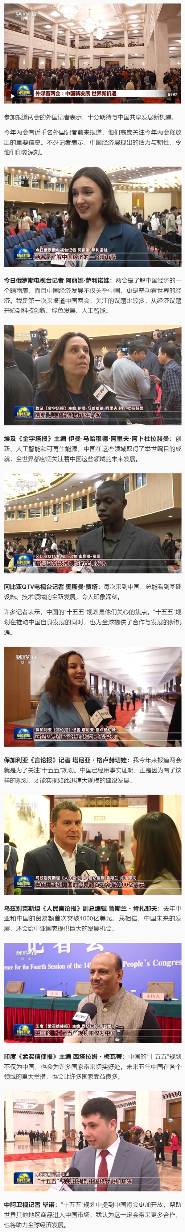 原标题: 视频丨外媒看两会:中国新发展 世界新机遇