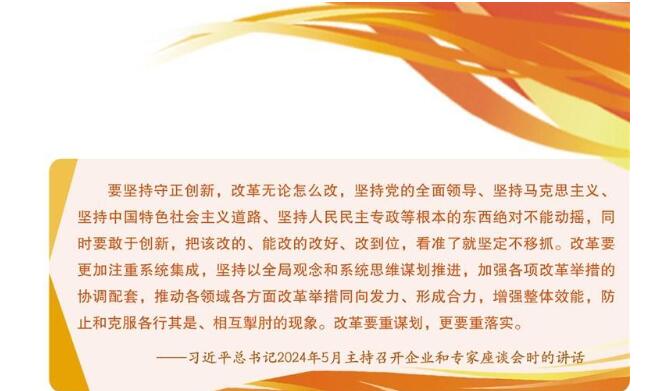 在守正中创新、在创新中发展,拓展改革广度深度。当今世界正在经历百年未有之大变局,我国正在推进中国式现代化这一人类历史上非常宏大而独特的实践创新,中国之问、世界之问、人民之问、时代之问给我们提出的新考题比过去更复杂、更难,迫切需要我们从理论与实践的结合上提交答案。进一步全面深化改革,要在解放思想、实事求是中守正创新,坚持一切从实际出发,深刻把握改革的目标任务和实践要求,遵循客观规律,摆脱路径依赖,奋力把改革继续推向前进。在凝心聚力、真抓实干中守正创新,坚持正确方向,加强改革的前瞻性、战略性、全局性谋划,把改革重点放到解决实际问题上来,沿着正确道路推动各项改革向纵深发展,扎实推进经济高质量发展。