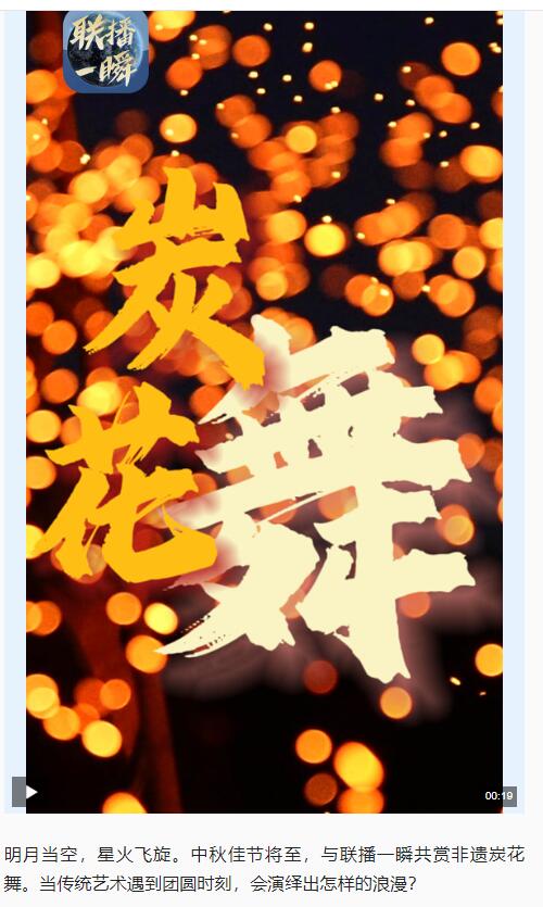 原标题: 文化中国行丨中秋佳节将至 联播一瞬带你看非遗炭花舞