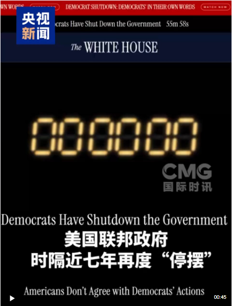 由于美国会参议院9月30日先后否决两党拨款法案,当地时间10月1日0时1分,美国联邦政府近7年以来再次“关门”,数十万联邦雇员不得不面临强制休假或被裁员,众多联邦部门的服务也“停摆”。