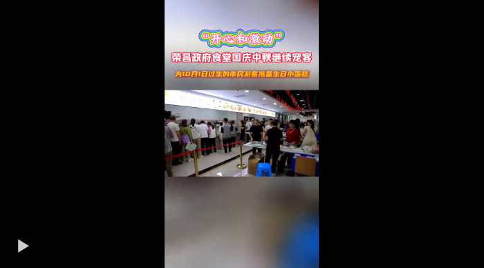 10月1日上午,记者看到,在荣昌区政府机关食堂开门营业前,前往就餐的游客就已排起长队。