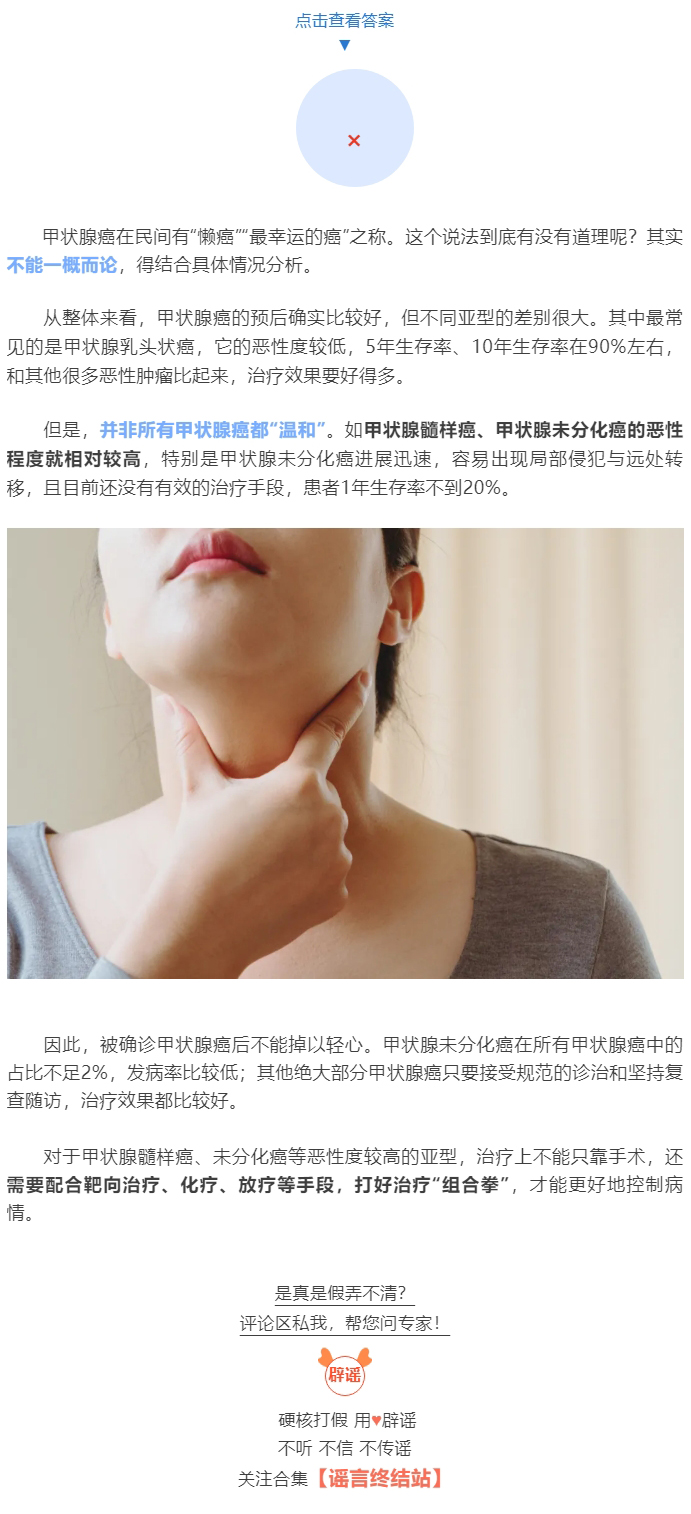 原标题: 甲状腺癌都很“温和”……是真是假?|谣言终结站